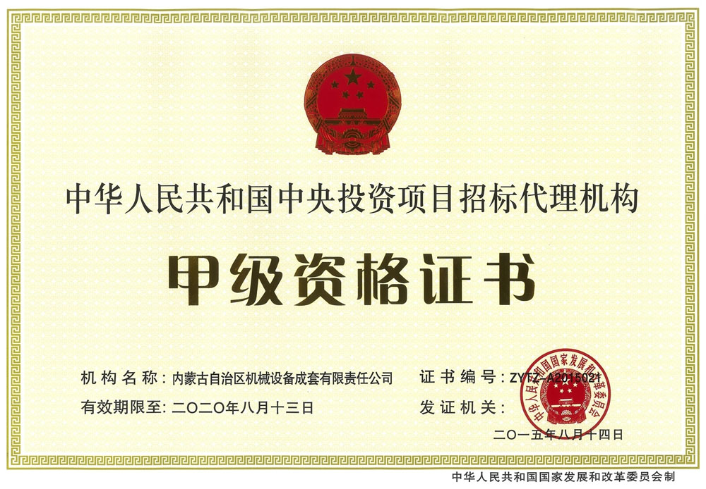 內(nèi)蒙古招標采購行業(yè)信用AAA級單位資格證書